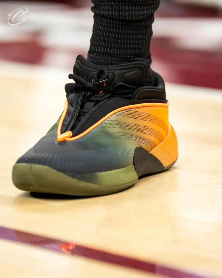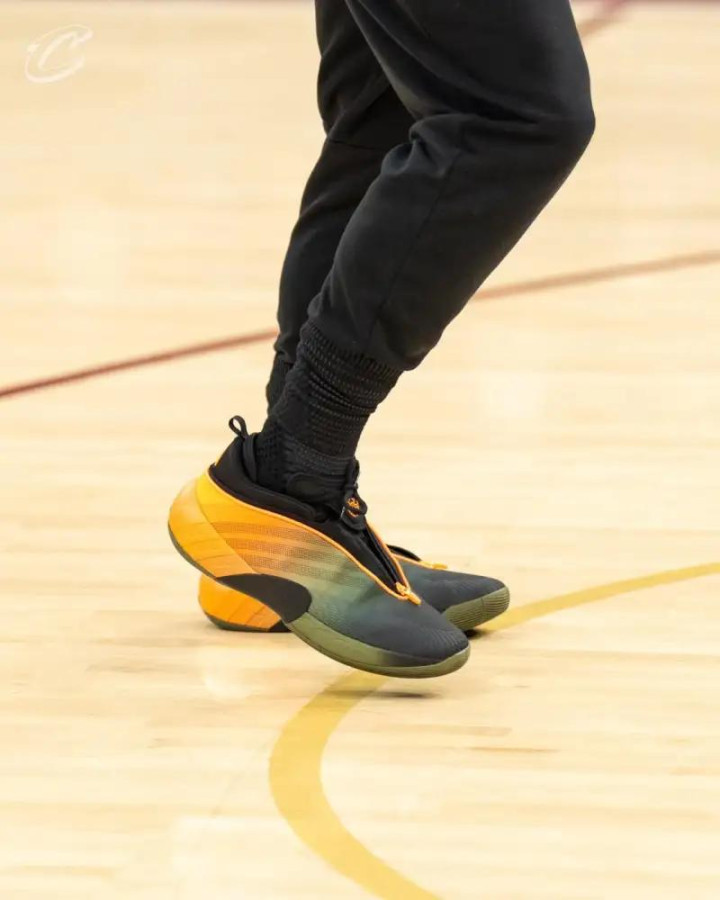 比赛中,米切尔上脚的是adidas DON Issue.7“Lambo”PE。这双球鞋不仅外观设计独特,充满了时尚感和科技感,而且在性能方面也十分出色。从设计上看,“Lambo”PE的配色灵感来源于兰博基尼跑车,鲜艳的色彩和独特的图案让人眼前一亮。在性能上,它采用了先进的缓震技术和支撑系统,能够为米切尔在比赛中的快速移动和高强度对抗提供有力的保障。比如在米切尔突破时,这双鞋能够提供良好的支撑,防止他在变向过程中扭伤脚踝;在起跳投篮时,缓震系统又能有效地减轻他落地时的冲击力,保护他的膝盖。